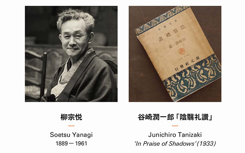 キーワードとなるのはこのふたつ。ひとつは柳宗悦らによる民藝運動、もうひとつは谷崎潤一郎——もちろん彼は小説家・作家です——による『陰翳礼讃※2』という随筆です。これを紐解いてみます。