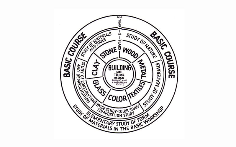 マックス・ビルが学んだ、バウハウスのカリキュラムがまさに同心円であり、その最終目標は建築、ビルディングとなっています。ベーシックから素材のスタディを経て、最後にビルディングにいくわけです。こういう風に、自分を中心にしながら段階的に領域を拡張していくというのが、西洋的な環境の捉え方であり、デザインされる環境の対象であると言えます。