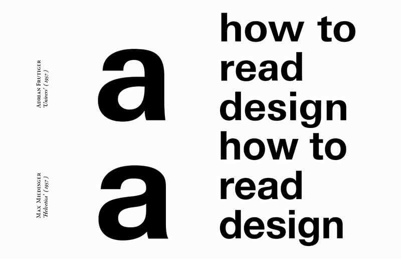 そうして、この後の1957年には、20世紀における傑作といわれる活字書体が発表されるわけですが、上がフルティガーによるUniverse、下がマックス・ミーディンガーによるHelveticaですね。こうやって並べると本当に似ているなあという印象があるんですが、もうこれらは今のわれわれにとって、「普通に見える」書体のたぐいだと思うんですよね。普通に見えるし、どこの国のものかもわからないようなグローバル性をもっている。こうしたものが20世紀の価値観で傑作と呼ばれるわけです。