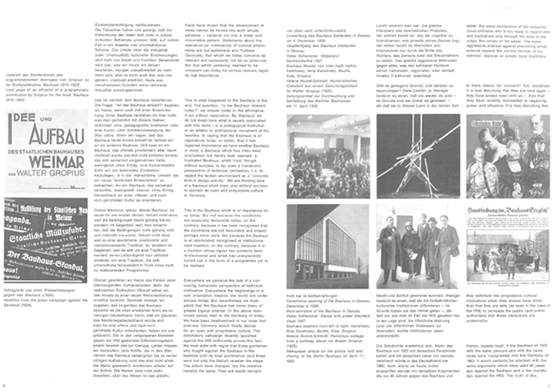 同時期にロシアにはロトチェンコがいます。社会主義国家たるソヴィエトが成立する時期ですから、民衆を鼓舞するようなデザインになっていくわけです。このころになると、当時としては先端技術だった写真が、テクストと並列にあつかわれるようになります。同じころバウハウスでもこうした写真と活字の融合は研究されています。デザイナーもまた抽象や構成という文脈のなかでグラフィックデザインを模索していました。