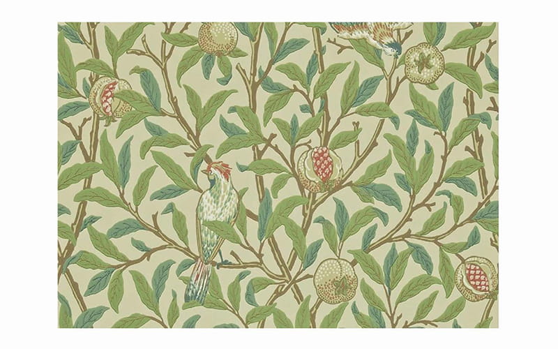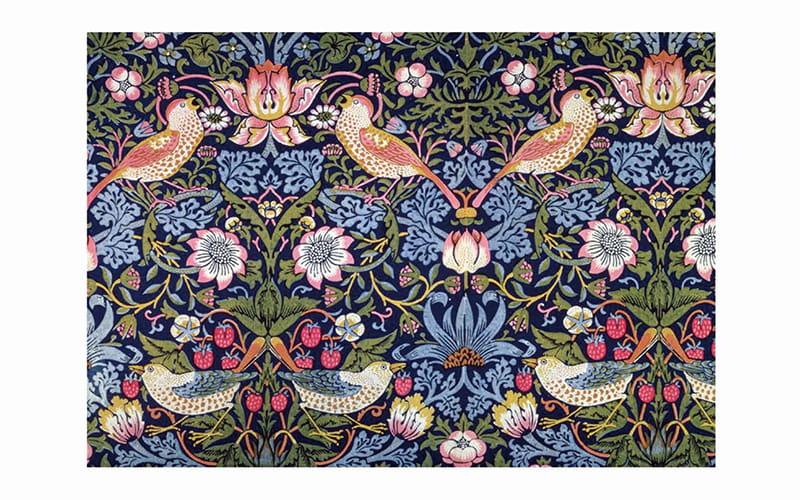 これはモリスの言葉なんですけども、「あなたの家のなかにあなたが美しいと信じないものはひとつも置いてはならない」というものがあります。僕もちょっと反省して、家の掃除をしようと思うんですけども(笑)モリスは先ほどのような、手工芸の極みと言えるような書物をつくったりしていて、職人技のような感じがあるし、あとは壁紙とかも手掛けているんですね。ここでキーポイントとしておもしろいのが、モダニストは都市とか環境といった大規模なレベルになっていたのに対して、モリスは家なんですよね。自分の守備範囲のなかで話をおさめようとしているところは、その思想の対象を象徴しているかもしれないです。そしてこういう、うっとりするようなデザインというのをやっているわけですよね。だから、先ほど大林先生のお話にもあったとおり、長谷川堯という建築家の言葉を借りれば、モダニズムが雄的で男性的なデザインだとすると、こちらは女性的と言える。