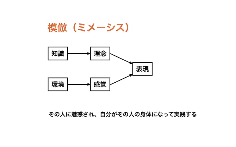 この本を参考にするとき、ふたつの態度があると思います。ひとつは実践書として模倣する態度。端的に人の方法を聞いて実践するというもの。つまり、方法を知識として取り入れて実践する態度。これがこの本を実践書として使ってしまう心理じゃないかという気がします。