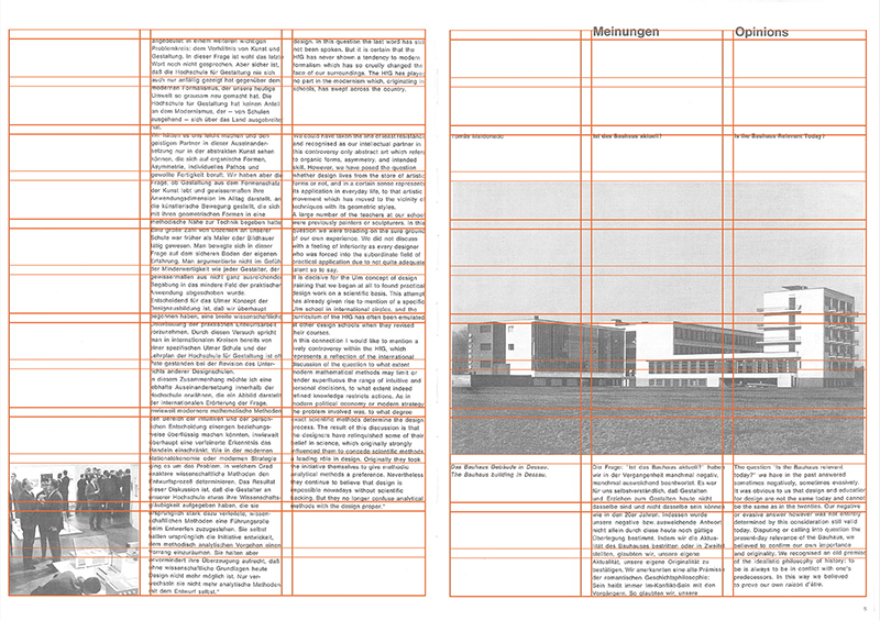 「構成」という日本語にはふたつ意味があります。ひとつは「コンポジション」、そしてもうひとつが「コンストラクション」です。「コンポジション」の方が、おもに芸術に関わる構成をさし、「コンストラクション」は工学的な構成という意味になります。バウハウスは、それ以前の工業デザインと抽象芸術の文脈を結びつけたわけですが、その時期にコンポジションからコンストラクションの方にモードが移行し、さらに1950年代、ウルム造形大学の時代になると、コンストラクションを科学的に考えるようになります。ですから、この『グリッドシステム』でいう「構成」とは、基本的にコンストラクションの意味だととらえてかまいません。