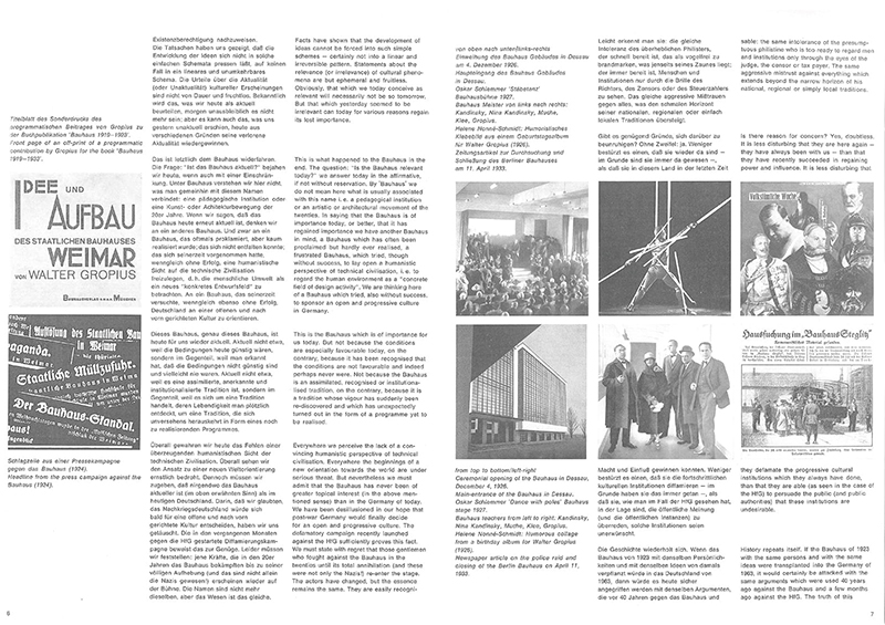 同時期にロシアにはロトチェンコがいます。社会主義国家たるソヴィエトが成立する時期ですから、民衆を鼓舞するようなデザインになっていくわけです。このころになると、当時としては先端技術だった写真が、テクストと並列にあつかわれるようになります。同じころバウハウスでもこうした写真と活字の融合は研究されています。デザイナーもまた抽象や構成という文脈のなかでグラフィックデザインを模索していました。
