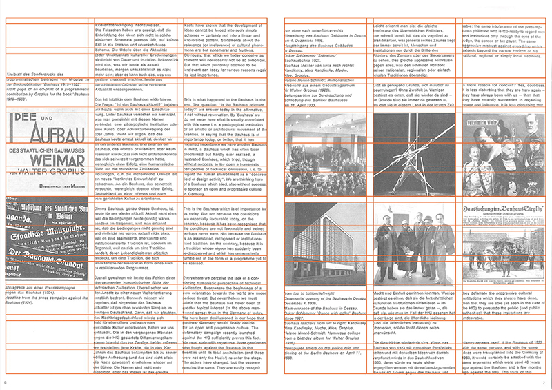造形的・構成的意義グリッドシステムは合理的な構成を可能にする 視覚的な要素を少なくし、主観的で感覚本位な造形を排除して、計画の統一性、わかりやすさ、明確さといった印象を生み出し、デザインにシステムとしての秩序をもたらす それによって素早く容易に読むことができ、理解度が深まり、記憶にも残りやすくなる このことは科学的にも証明されている