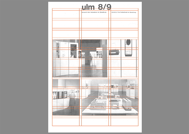 これをみて作例が垂直12分割となっている理由、なんとなく勘づかれている方もいらっしゃるかもしれません。12というのは、2の倍数、3の倍数の公約数です。ブロックマン『グリッドシステム』の作例は垂直4分割、『ulm』紀要は垂直3分割ですから、12分割であれば、この両方のグリッドで展開できる画面構成に対応することができます。ちょっと音楽の拍子の話みたいですね。いっけんすると、より細かく分割することになりますが、結果として効率はあがるでしょうし、よりフレキシブルに展開ができるものと想像します。