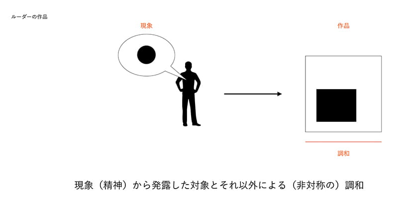 こういった話とルーダーが言っていることをくらべると、なかなかおもしろい。ルーダーは、岡倉天心の『茶の本※18』を引いていて、もちろん影響も受けているんですが、解釈が結構違うんですね。ルーダーがデザインにおける「調和」について言っている部分を見ると、自分の精神に浮かぶイメージ、つまり哲学用語の「現象」ですが、そこにある対象とそれ以外の部分のバランスのことを言っています。現象を具現化したものが作品としてあって、作品という対象とそれ以外によって調和が取れているということです。これがエミール・ルーダーの東洋観であり作品観、そしてデザイン観なんだと思います。