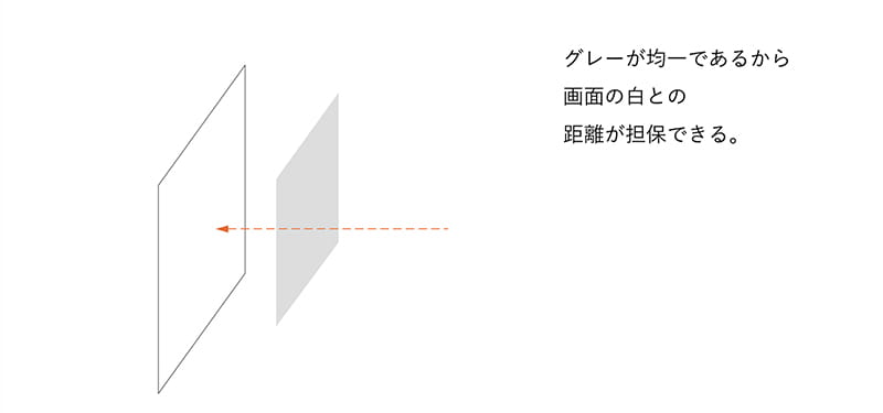 さて、ここまでおはなししましたように、欧文、つまりアルファベットの組版においては、フラットなグレーというのが、ひとつの基準となります。いわゆる組版カラーというものです。グーテンベルクのブラックレターも、ジェンソンのローマン体も、バーゼル派によるユニヴァースの組版も均質なグレーの組版となっています。ウィリアム・モリスは紙面のなかにテクストのブロックができるようといいましたが、そこには画面の白と組版のグレーのレイヤー的な、二元的な関係ができています。バーゼル派のしめした奥行きある画面空間は、それぞれの組版がフラットなグレーであるからこそ、位置関係が明確であり、距離感ができるといえます。つまり白っぽい組版は画面になじみ奥へ、黒っぽいものは前へ。
